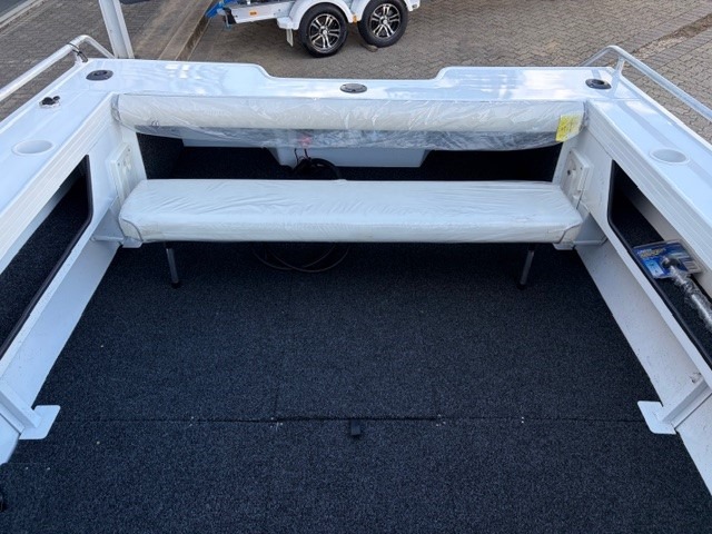 Designed with a car-like layout, the Fishabout features a wide-open deck, rear lounge and large dash. The walk-through dash makes retrieving and setting the anchor a breeze while the windscreen and optional bimini and envelope provides protection from the elements.